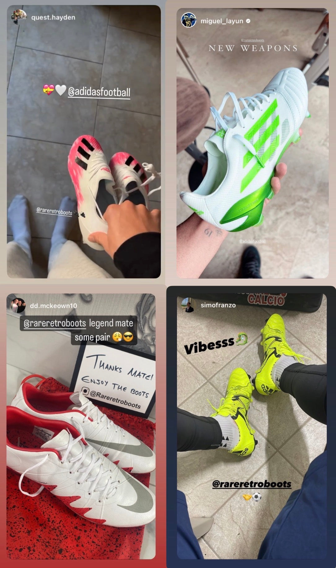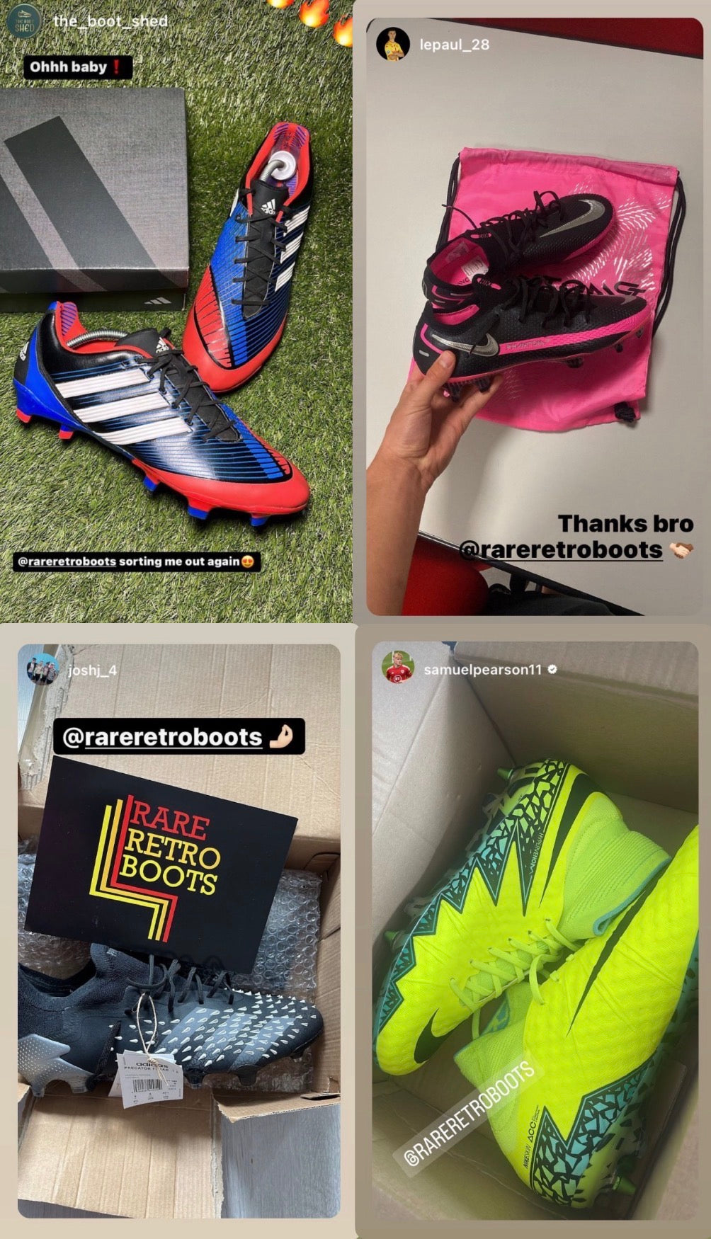 We are an online store specialising in football and rugby boots, stocking many of the best and most desirable brands. From recent releases to sought after older models. Since we started the business over 5 years ago, we’ve supplied thousands of pairs of boots to all around the world. We’ve also built a following of over 1.5 million people, across our Instagram, TikTok and YouTube.