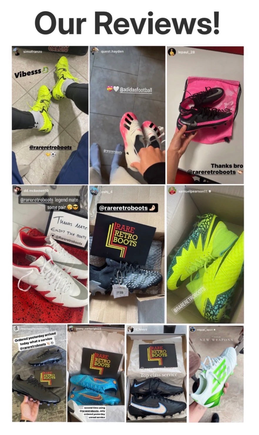 All football boots sold by Rareretroboots are 100% authentic. Every pair is thoroughly inspected before dispatch. We have sold thousands of pairs worldwide with 5-star feedback.